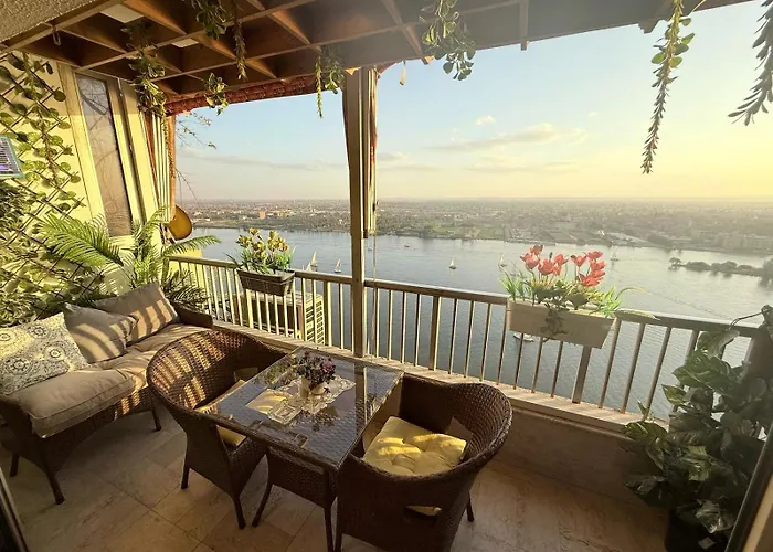 Overlooking the city, the 150 m² Maadi 2Br On 23Rd Floor Overlooking The Nile Cairo apartment is about a 25-minute walk from HSBC Bank Egypt. Guests can relax and take in river views from a terrace of this 2-bedroom apartment.